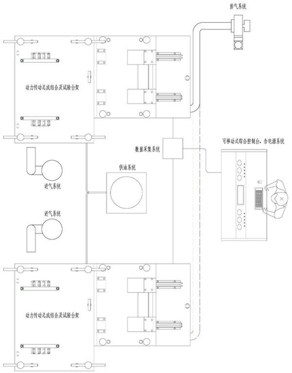 動(dòng)力傳動(dòng)組合試驗(yàn)系統(tǒng)布置方案如圖所示: