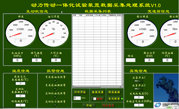 動(dòng)力傳動(dòng)組合試驗(yàn)系統(tǒng)能夠進(jìn)行冷卻系、潤(rùn)滑系、液壓系統(tǒng)及各管路工作狀態(tài)檢查,動(dòng)力傳動(dòng)系統(tǒng)一體化空載運(yùn)轉(zhuǎn)性能檢查,動(dòng)力傳動(dòng)監(jiān)控系統(tǒng)功能檢查,以及各部分和管路的密封檢查等,主要包含以下功能: