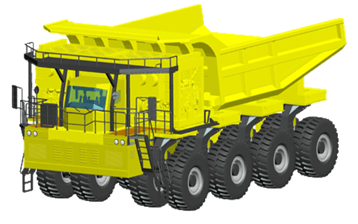 采用合能電驅(qū)動(dòng)系統(tǒng)的新型節(jié)能多軸重型礦用自卸車,已經(jīng)載重240噸進(jìn)行了2000公里的路面各項(xiàng)試驗(yàn),在內(nèi)蒙古露天礦克服當(dāng)?shù)亓阆滤氖鹊膼毫犹鞖鈼l件,每天分三班正式運(yùn)行。該車采用4軸線、8個(gè)懸架、16×16全輪驅(qū)動(dòng)、全輪轉(zhuǎn)向等結(jié)構(gòu)形式,綜合運(yùn)用了雙發(fā)動(dòng)機(jī)聯(lián)合動(dòng)力、多車輪獨(dú)立電驅(qū)動(dòng)技術(shù)、大行程液壓懸架、擺動(dòng)軸技術(shù)、箱型車架、液壓制動(dòng)和轉(zhuǎn)向、遠(yuǎn)程監(jiān)控自動(dòng)診斷等先進(jìn)技術(shù),提高了車輛道路適應(yīng)性,降低了道路維護(hù)頻次和成本,延長了輪胎壽命,同時(shí)具有轉(zhuǎn)彎半徑小、機(jī)動(dòng)性能好、供貨周期短、采購及維護(hù)成本低等優(yōu)點(diǎn),別適應(yīng)于大中型露天礦山開采運(yùn)輸和大型工程施工。